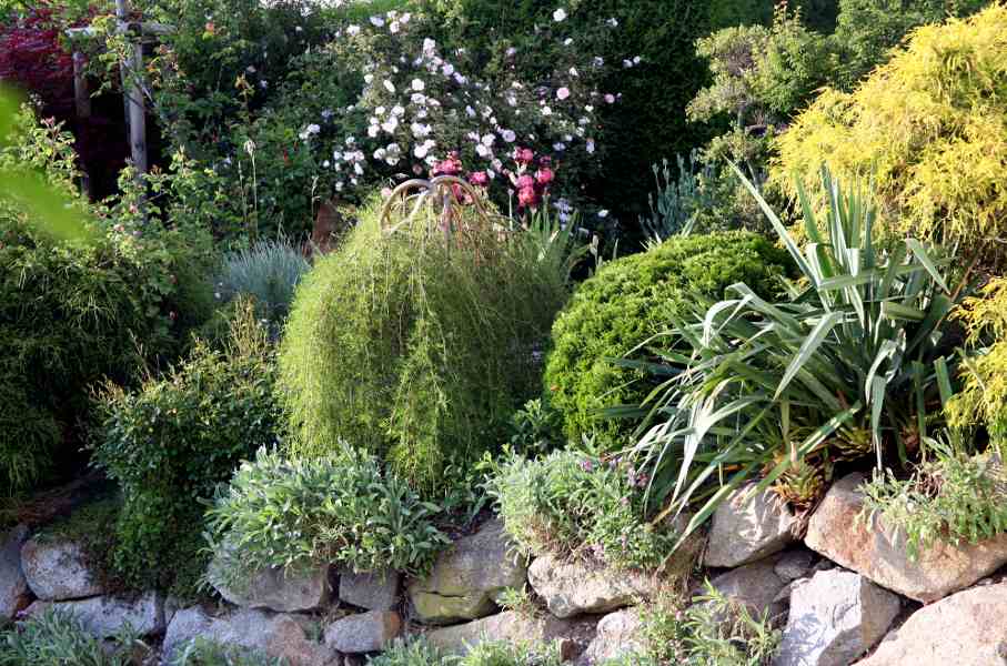 Schön!Bevor der Gewitterschauer kam, zeigte sich dieser Teil meines Steingartens von seiner romantischen Seite. Leider ist die Bildqualität nicht so besonders....