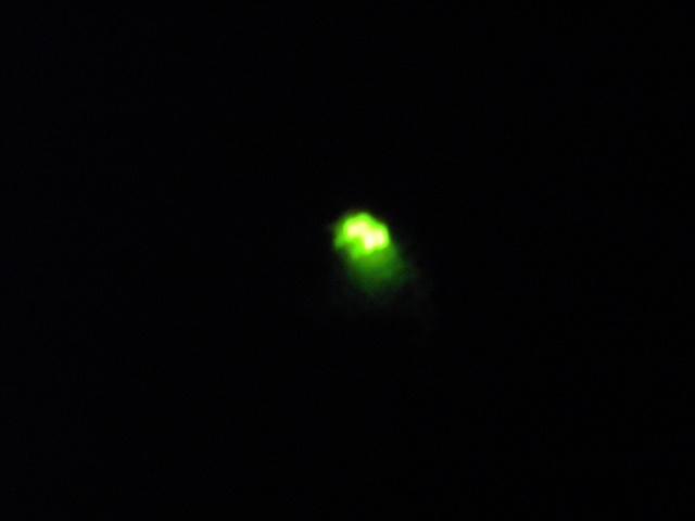 Vor drei Nächten leuchtete mir unerwarteterweise im Garten auf dem Boden ein grüner Punkt entgegen.