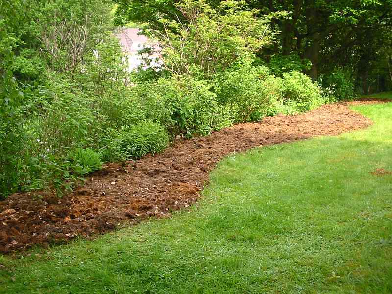 , ich hab diese Woche nämlich auch nochmal diese Sache mit den Kartoffeln unter Heu probiert. Heu hatte ich keins, aber noch einen Riesenhaufen von Grasschnitt und Laub der letzten drei Jahre (hab kein neues Hochbeet mehr gebaut, aber gebunkert...). Zusätzlich einige gekeimte Speisekartoffeln und auch noch ein paar, die ich extra dafür noch gekauft habe, weil sie schon im Supermarkt zeigten, dass sie überhaupt keimen, also nicht, wie die meisten französischen, irgendwie mit Keimhemmern behandelt wurden. Und ein Beet, das eigentlich keines mehr war und das ich gerne breiter und mit geschwungenem Rand hätte, außerdem zuviel Wiese. Also probiere ich dieses Jahr Kartoffeln unter Gras/Laub/Mulch/Matsch...Als die Kartoffeln irgendwann alle waren, hab ich noch Dahlienknollen gelegt, bei denen ich auch nicht wußte, wohin damit, Experiment halt.