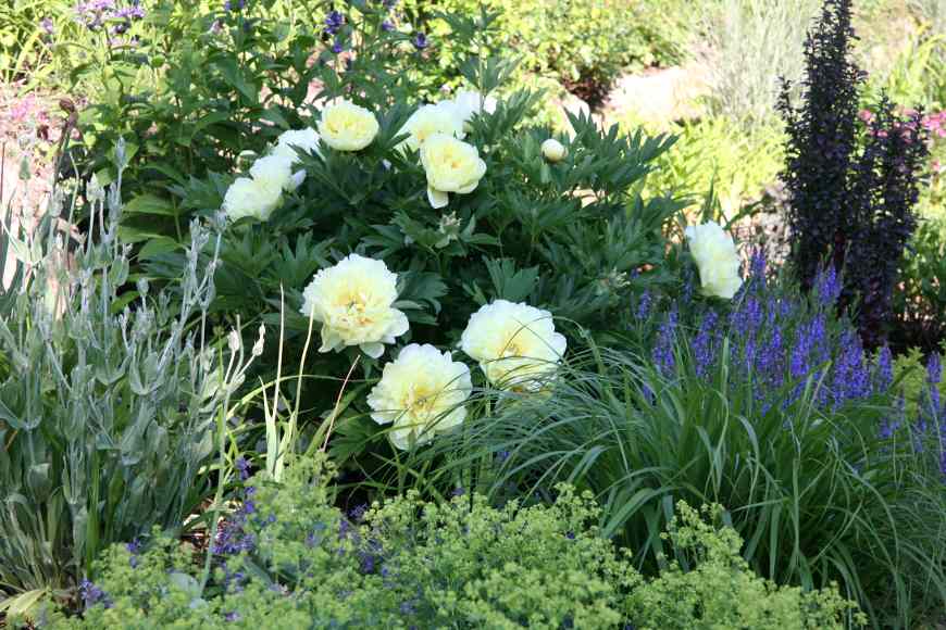 Das ist eine sehr schöne, harmonische Kombinationhier noch "3 Bs": Bartzella blüht im Beet am Bach, darauf freue ich mich jedes Jahr: