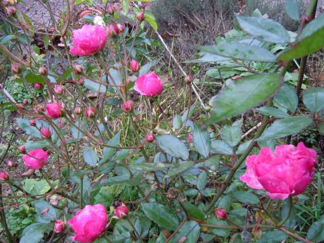 Die 2. Rose, welche momentan noch blüht und nicht gammelt ist das Rosenklassen-Chamaeleon "GdF".Irgendwie ist sie für mich von Erscheinung und Blatt eine Polyantharose (multiflora).Kein Sternrußtau, ganz wenig Mehltau und dauerblühend. Gut als Strauch zu halten.