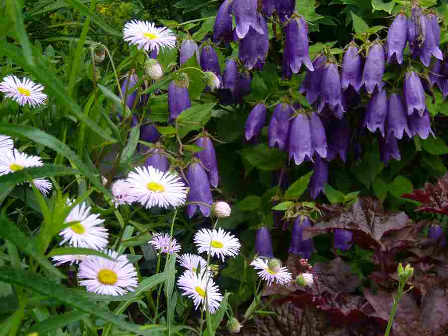 Hausgeist, Bild Nr. 3 könnte auch hier im Garten sein. Und die dunkelrote Bartnelke ist toll. Was blüht da so schön blau im letzten Bild?
