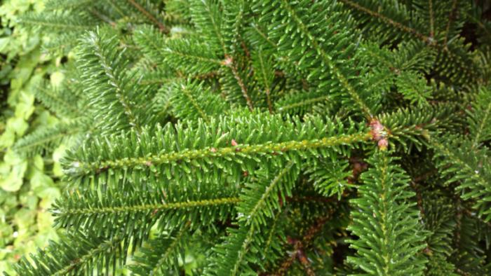 Die Nadeln der Abies recurvata stehen kammartig bis leicht revers.