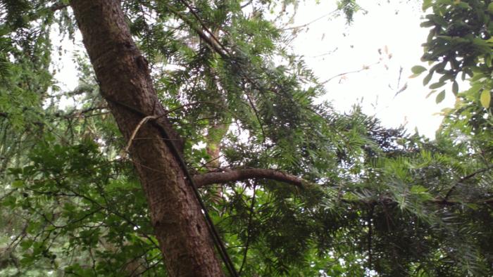 Zweig meiner Keteleeria mit Resten eines Zapfen,der im unteren Teil bereits abgefallen ist.