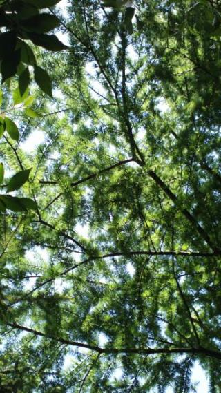 Abies nephrolepis von der Terrasse gezoomt.Man erkennt die vielen Zapfen in unerreichbarer Höhe.