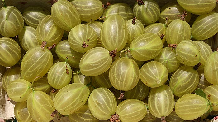 - Trotz des katastrophalen Wetters dieses Jahr weder Stachelbeermehltau noch Sonnenbrand, absolut gesund.
