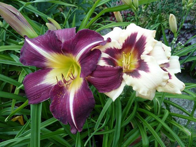 Pearl, watt sachste ? Volltreffer könnte doch einziehen ..Halbimmergrün, aber gut winterhart. Spider - toller Fotoeinstieg ! Und sehr gut geöffnete Blüten bei Dir.Man sieht bei der Kombi, wie schön man mit den Topf-Taglilien arrangieren, kombinieren kann.maliko