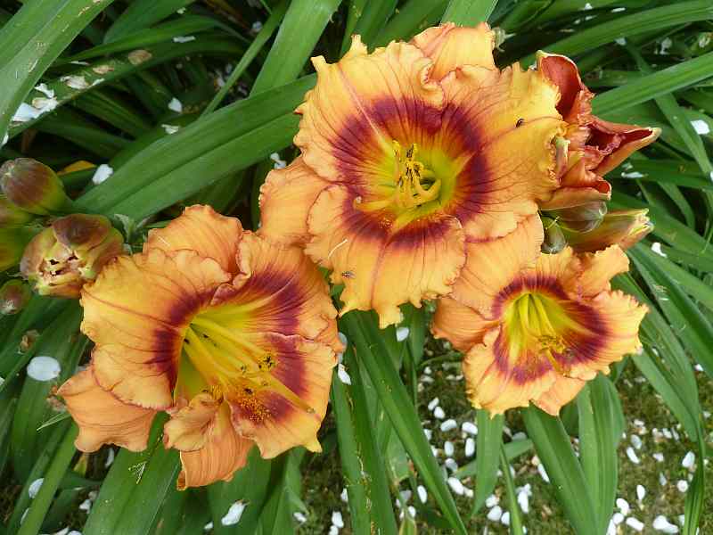 Bei Taglilienversand.de ist sie mit 65 cm angegeben...Remontieren müsste der Ersatz für die Stella auch nicht. Die paar Blütchen waren nicht der Rede wert.Ed Murray ist schwarz-rot (siehe 1162), Study in Scarlet hat ein kräftiges klares Rot mit gelbem Schlund (ist noch nicht offen). Letztere würde direkt daneben/-hinter stehen.ArianeCarousel Princess hat kleinere Blüten als Stella de Oro und remontiert nicht. Aber die Blüten sitzen viel besser über dem Laub. Die Höhe muss ich erst messen gehen. Sie sollte aber 45cm nicht überschreiten schätze ich mal.Ob sie zu Ed Murray und Study in Scarlet passt, kann ich nicht sagen, weil ich beide Sorten nicht habe.