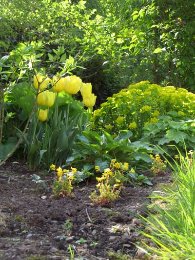 Die "gelbe Ecke" gefällt mir im Moment am besten, da sie schon so dicht ist, dass ich wahrscheinlich nächstes Jahr etwas versetzen muss. einmal im Mai