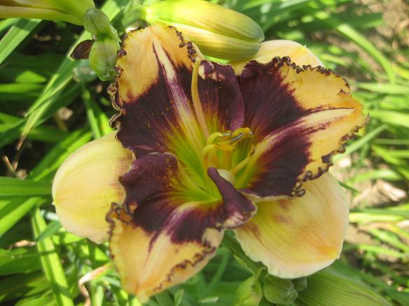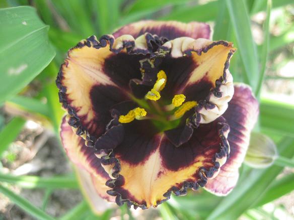 aber ausdrucksvoll, von der habe ich nie gehört! Sie hat keinen grünen Schlund und das wirft sie aus dem Rennen. - Nee! Sie hat! In der AHS database ist ein chartreusefarbener Schlund registriert. 'Apophis' (Mahieu-Burris, 2007). Der wird am Morgen sichtbar sein.Auch sehr dunkel, aber leider nicht so elegant wie "Black Ice", finde ich: