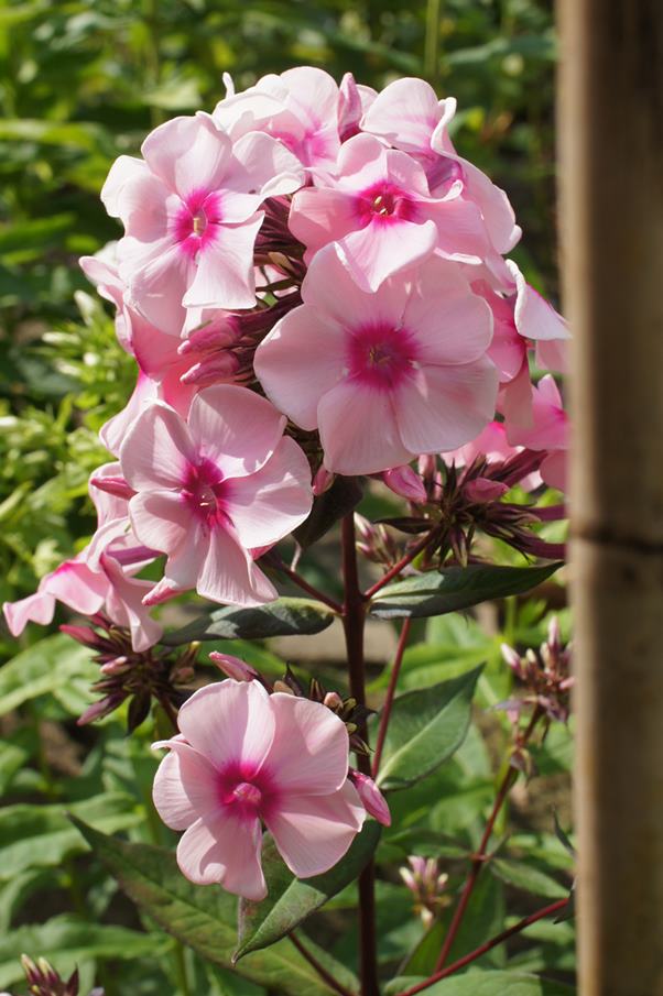 Bei nettem Julisonnabendwetter habe ich noch einige Fotos gemacht. Ein kleiner Querschnitt der bereits blühenden Phloxe. :)Nicht ganz scharf, aber die Farbe ist berückend (Rot und Fotografieren ... na ja. Aber die Blüte links kommt der Originalfarbe schon recht nahe.): 'Fanal' (1935) von Albert Schöllhammer. Unschlagbar im Rotbereich!