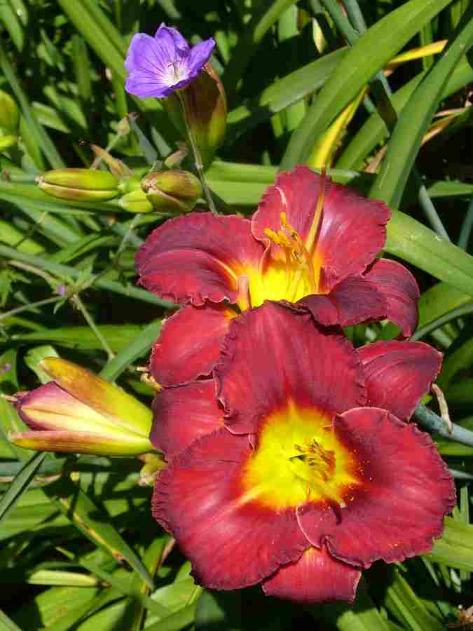 Das Bild ist nicht so besonders, aber man sieht gut, mit welchem Blütenreichtum Brilliant Red mal wieder aufwartet. Bumble Bee passt auch ganz gut dazu.