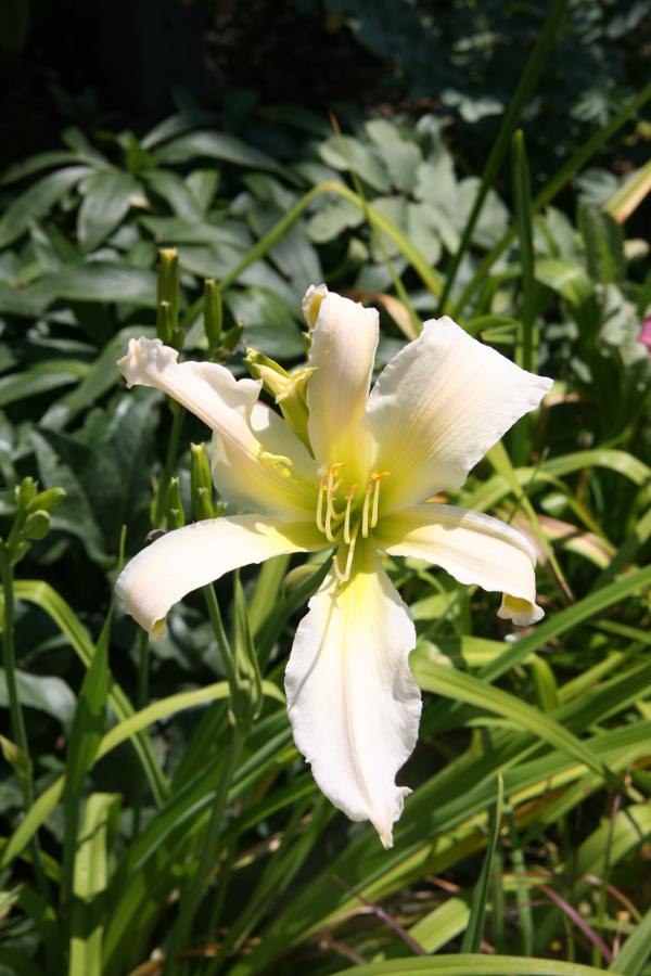 Hier völlig anders - gerade die weißen sind dann besonders häßlich gelb. Offenbar spielen da nicht nur die Temperaturen an einem heißen Tag, sondern während der ganzen Knospenbildungs- und Blühphase (wohl auch nachts) und die Bewässerung eine Rolle. Der Boden ist es hier jedenfalls nicht - auf Lehm und in saurer Erdmischung bleiben sie trotzdem gelb (heuer zum Vergleich probiert).gelbe, cremefarbene, pastellfarbene und weiße Taglilien sind einfach besser in der Sonne bei Trockenheit.