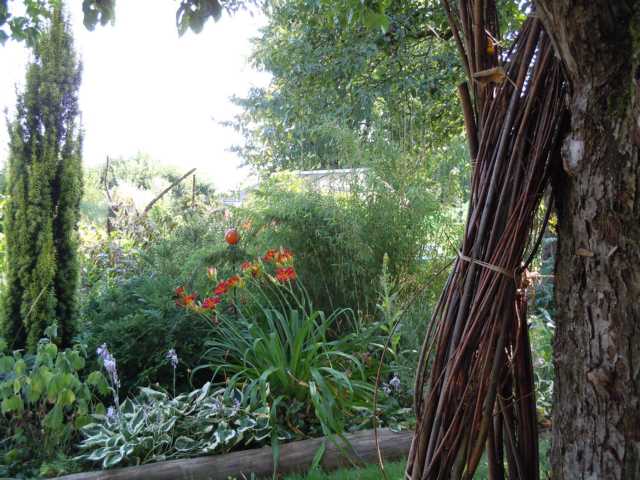 So, nun hab ich doch mal wieder Hemerocallis fotografiert. Ich versuche mal, sie im Kontext zum restlichen Garten zu zeigen. Es sind alles Hemerocallis, die aus meiner einstigen Sammelwut übriggeblieben sind, und die nicht gepflegt, gewässert und großartig gedüngt werden. "Zart" sind sie nicht alle, "Arten" auch nicht. Mit den Neuzüchtungen im Hemerocallisthread können sie nicht mithalten, deshalb hier.Vermehrt wird durch "Durchstechen mit dem Spaten", so erst dieses Frühjahr passiert.Die meisten stehen irgendwo am Rande einer Hecke und lichtschattig unter Obstbäumen.Momentan ist es sehr trocken und hat seit 4 Wochen nicht geregnet.
