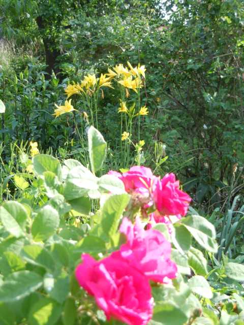 Das Foto ist von gestern. Ich bin zwar fast vom Duft der Rose"Portlandica" im Vordergrund umgefallen, aber die Hem duftet auch.H. lilioasphodelus kann aber sein. Die hab ich auch mal gesetzt. Auffällig ist bei der das aufrechtstehende schmale spitze Laub.Ich habe den Überblick verloren (Schildchen weg), deshalb muss ich neu bestimmen (lassen