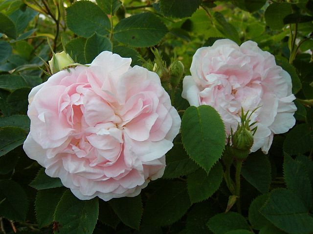 Schwer zu sagen ohne Details ::)Im Nachbardorf steht übrigens eine Rose (Arbeitsname: Kindergartenrose), die aussieht wie Maiden´s Blush, aber in manchen Jahren im Juli eine üppige zweite Blüte zeigt :oUnd bei mir blüht grade Veilchenblau an mehreren Trieben sehr eich nach