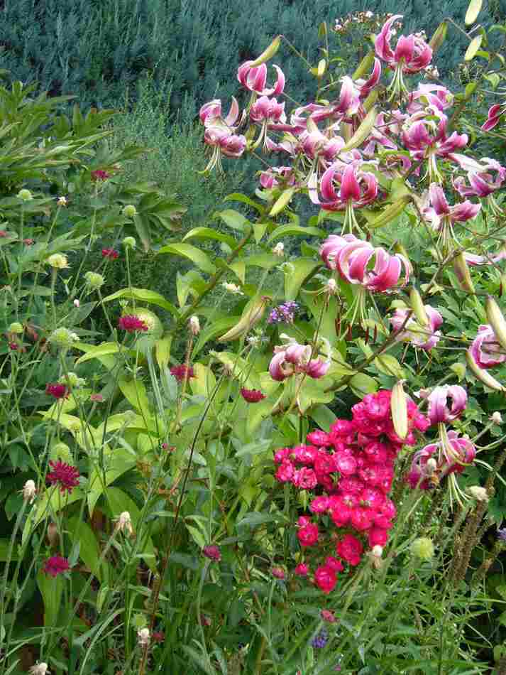 Der Sonnenhut ist "Flame Thrower""Black Beauty" ist richtig. Eigentlich habe ich keinen guten Lilienboden, zu schwer. Aber diese Sorte wird von Jahr zu Jahr mehr und vielblütiger.Die Astilbe finde ich auch klasse, auch wenn ich mir die Blütenfarbe etwas aprikosiger ("aprikosenrosa") vorgestellt hatte. Es ist A. chinensis "Delft Lace" (von Stade).LG Ariane