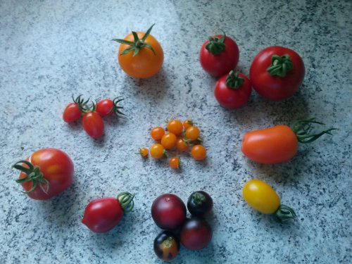 Ich konnte auch schon einige Tomaten ernten. Am Sonntag waren es 10 Sorten.
