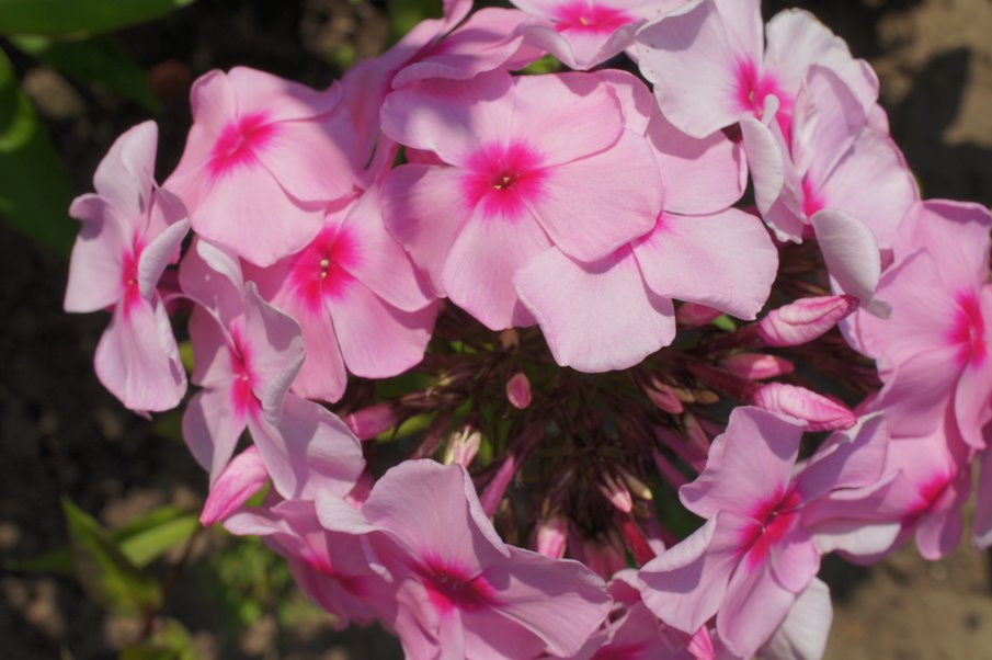 Phlox p. 'Fesselballon' (KF, 1936) - eine Draufsicht. Das Rosa ist viel kühler als das der 'Landhochzeit'. Warum ist 'Bright Eyes' (Symons-Jeune!) ein typischer Gartencenterphlox? - Weil er so dankbar blüht, gesund und stabil in der Farbe und relativ stabil im Wuchs ist. Existenz berechtigt? Die Frage des Tages vielleicht? - Ob und wie 'Bright Eyes' gefällt? Dinge, die die Welt bewegen ... Guten Morgen!