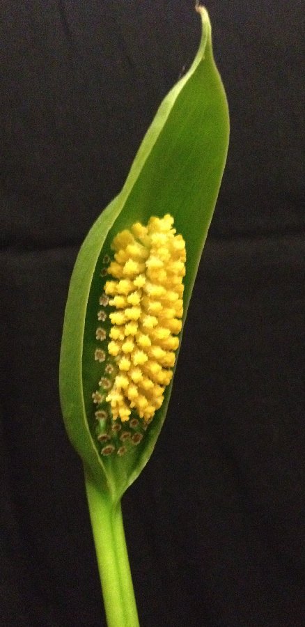 Dieses Jahr beglückt mich die oben schon gezeigte Spathantheum orbignyanum mit einer Blüte. Im Vergleich zur Verwandtschaft Amorphophallus ist der Geruch glücklicherweise nur dezent muffig.