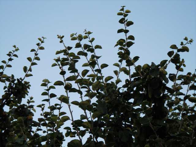 Meine Konstantinopler Quitte macht mir etwas Sorgen. Bisher war ich schwer begeistert, dass sie an diesem suboptimalen Standort so gut gedeiht. Daneben war bis vor kurzem noch ein Flieder, der aber entfernt wurde, damit die Quitte mehr Platz hat.Von Weitem steht der Baum gut da.