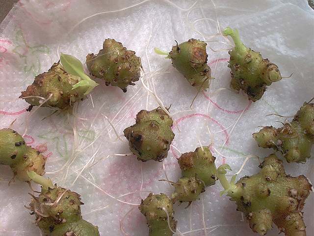 Tolmiea,das sieht ganz so aus wie winzig kleine Helianthum toberosum-Knollen... du weißt schon, die andere gelbe Gefahr.Wo genau hast du Dinger gefunden? Hingen sie in den Bäumen, lagen sie auf dem Boden, in der Nähe welcher Pflanzen? Und ist das auf dem ersten Bild die Mutter? Sie schlingt doch wohl, oder?Hingen alle UPOs an so einer Pflanze?Schneid' doch mal eins durch...