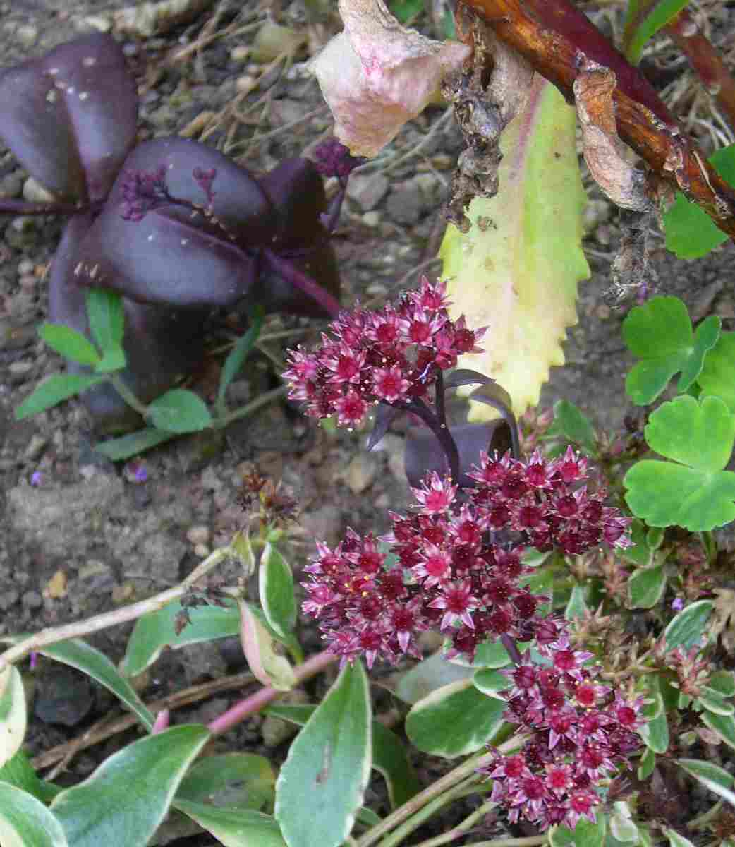 Hat eigentlich niemand Sedum ussuriense? Nicht nur, dass der Name hübsch ist - sie blühen toll, das Laub kann sehr dunkel sein, und ich bin der Überzeugung, dass sie in vielen der niedrigeren, spät rosa blühenden Sorten rumgeistert.