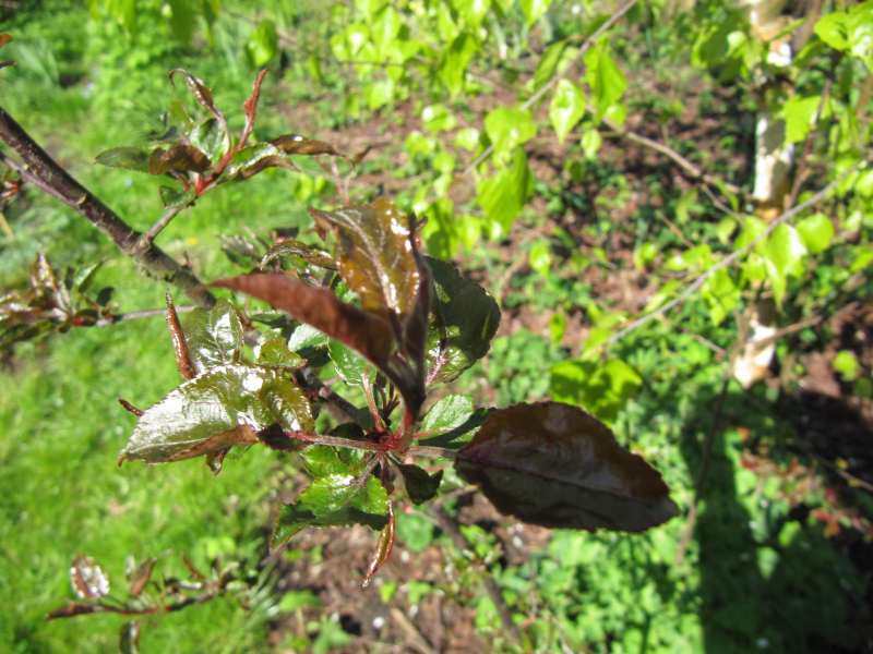 Hier sind die Knospen der Zieräpfel vor dem Aufblühen. Und da fällt auf, dass Red Sentinal nur auf einer Seite einige wenige hat. ???Im Vorjahr hat er prächtig geblüht und dann Äpfel getragen. Die hingen auch relativ lange im Winter dran, bis sie in der Kälteperiode im Februar die Amseln ernteten. - Kann diese lange Zeit mit Früchten der Grund sein, dass der Baum kaum neue Knospen angesetzt hat? Oder ist es ein alternierender Fruchtansatz?