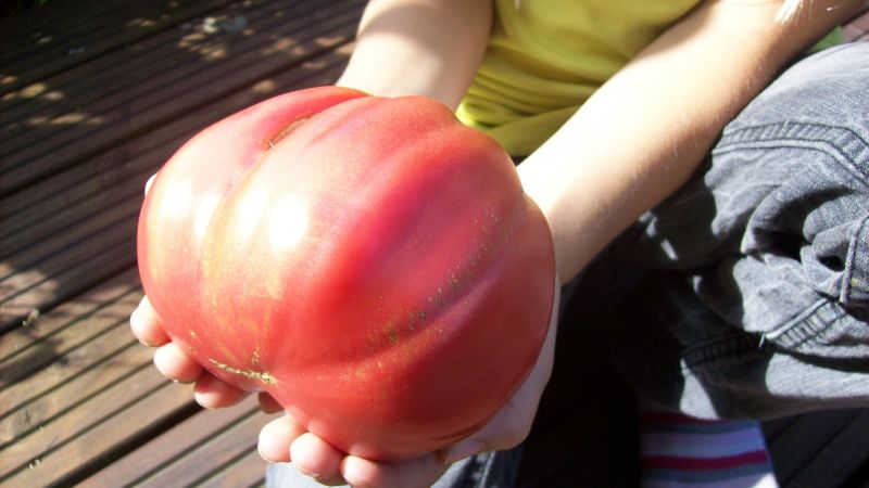 Ja, das ist meine absolute Lieblingstomate, die Südtiroler. Der Geschmack ist klasse und die macht jedes Jahr so Brummer. dieses Jahr hatte ich Holzasche unter die Erde gemischt... deswegen sind die noch einen Tick wuchtiger !