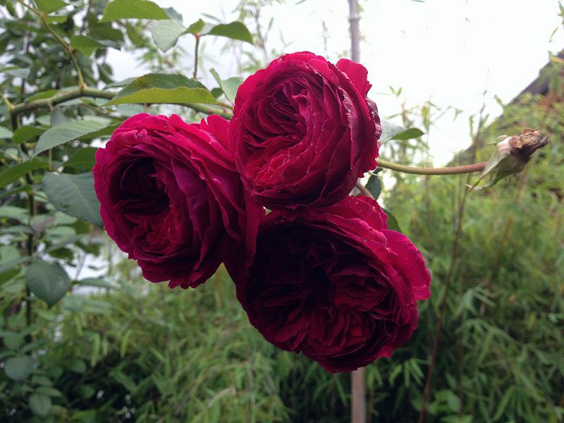 : die Blüten von Queen Elizabeth sind ein Trost an grauen Tagen, ihr klares Rosa leuchtet dann so schön gegen das Grau an.