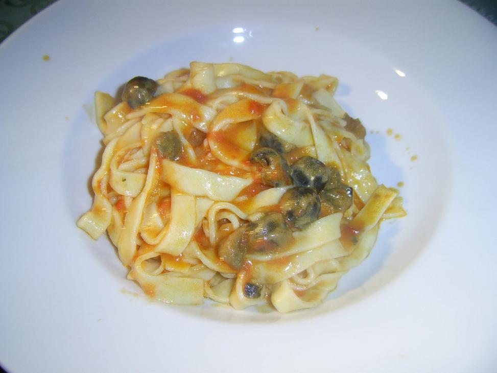 Gestern hatten wir dann endlich mal wieder selbstgemachte Tagliatelle; diesmal in der Variante "alla puttanesca". Superlecker.
