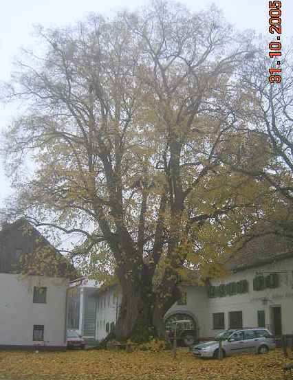 ! unsere tausendjährige linde verliert nun ihr goldenes kleid viel zu schnell. ich wollte noch auf sonne warten, aber das geht sich wohl nicht mehr aus. auch die autos darunter wären besser woanders gestanden ...