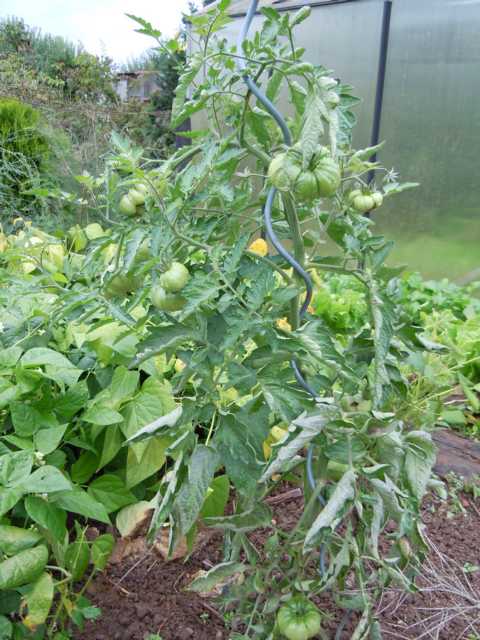 Ein Favorit: Purple Calabash. Rosafleischtomatengeschmack mit etwas viel Säure. Sonst sehr robust.Ich lass sie mal stehen, mal schaun, wie lange die Freilandtomaten durchhalten.