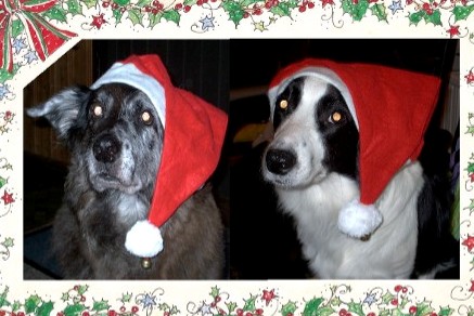 Hier hab ich auch mal ein Bildsind zwar meine WeihnachtsHunde, aber den Bezug zum Garten haben die beiden ja auch, weil sie darin herumlaufen