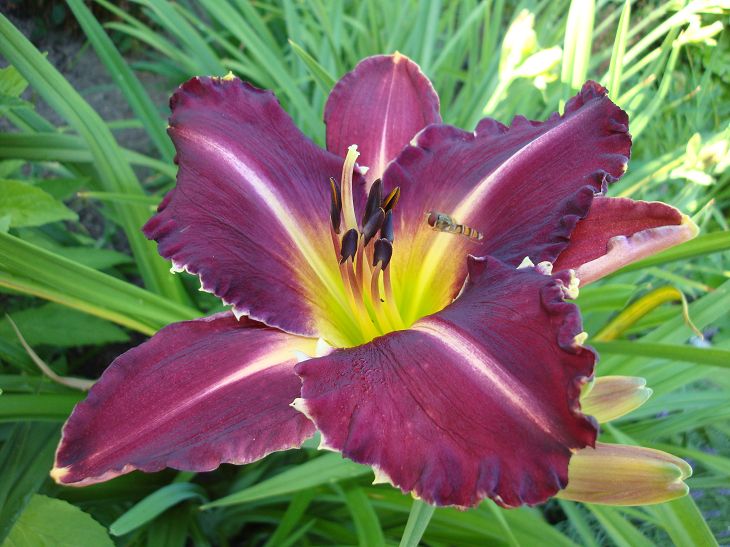 Mir gefällt deine Taglilie auch - und ich hatte spontan die Idee, es könnte Olive Bailey Langdon sein. Um sicher zu gehen, habe ich meine eigenen Aufnahmen mit denen aus dem Netz verglichen. Dabei fiel mir auf: Diese weißen Mittelrippen werden bei den anderen Fotos gar nicht gezeigt. Auch bei mir gibt es Blüten, die ganz eintonig sind.Die gleiche Geschichte bei Bela Lugosi, allerdings ist die helle Mittelrippe seltener.Es sind keine Fehllieferungen. Mir ist das vor Deiner Fragestellung nie aufgefallen, finde ich interessant.Hat von Euch auch jemand diese Unterschiede ?Also, ich tippe auf die Olive Bailey Langdon, martina. Die ist auch sehr wüchsig. Und toll, weil sie einiges im Petto hat. Vor einigen Jahren, in extrem heißem Sommer hatte sie sogar den Anflug von weißen Zähnchen. Mal schauen, wo das Bild ist....maliko
