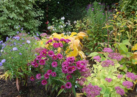@maliko, was ist denn das lila Blühende auf dem letzten Foto?Und ich stelle fest, dass es bei Dir wohl kälter und rauher ist als hier. Bei den Funkien fallen jetzt zwar die plantaginea Hybriden durch die Feuchtigkeit schneckenzerfressen in sich zusammen, aber die anderen sind noch ganz grün, ebenso das hohe Sedum.Hoffentlich haben wir noch paar trockene Tage ohne Wind, damit die Kupferfelsenbirne noch ein wenig so herrlich orangerot leuchtet