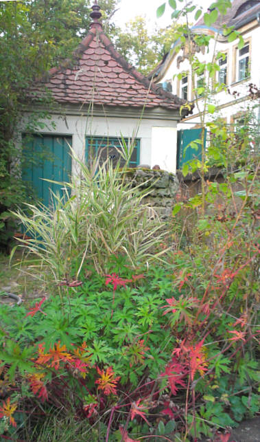 Danke Scabiosa ... die Gebäude sind dieses Jahr aber fast das einzige schöne ... :-XEinzelpflanzen sind natürlich trotzdem sehr schön und ich freue mich daran. Aber sobald ich versuche, ein ganzes Beet zu photogafrieren, ist immer auch ganz viel umgefallenes/verdorrtes/aus-dem-Ruder-gewachsenes mit auf dem Bild.Dieses Jahr war das erste, in dem ich Nimbus bewusst heruntergeschnitten habe, die roten Blätter könnten aber die Reste des alten Laubschopfes sein.Durch den übermäßigen Regen bis Juni war es extrem auseinandergefallen.