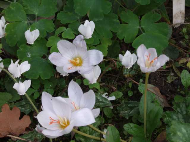 C. sativus hab ich hier selten mal vor November blühen sehen.C. speciosus legt dagegen jetzt richtig los - pünktlich zum Mistwetter. Da hatten die meisten Colchicum dieses Jahr Glück.