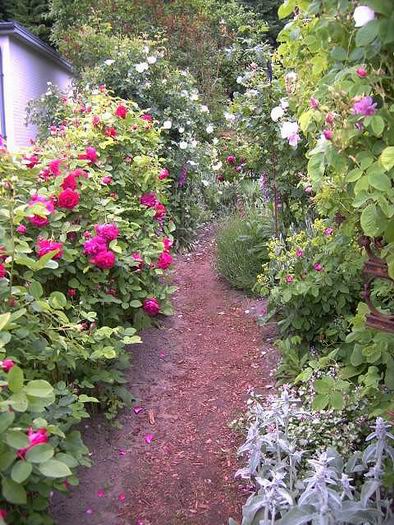 Hier habe ich doch noch mal einige Fotos von der vermeintlichen Bourbonrose in Groß Sarau gefunden.Die ältere Gartenbesitzerin hat diese Rose schon von ihrer Mutter geerbt und wwurzelecht als lange,lange Hecke gezogen.