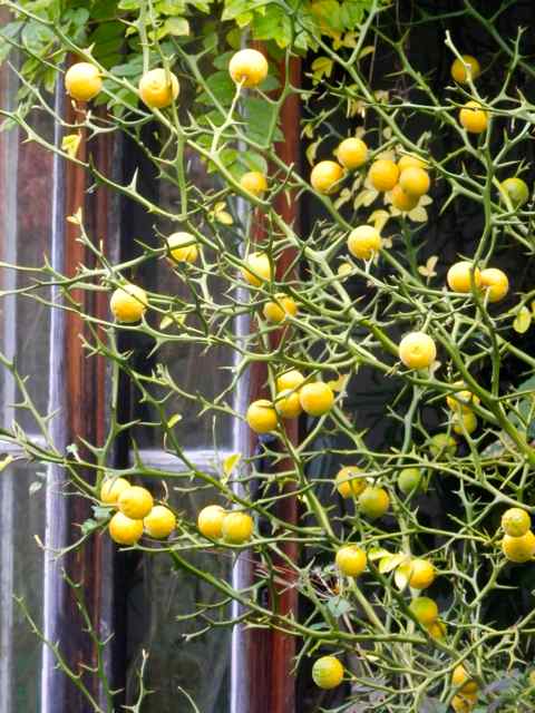 Auch vorm Laubfall klasse!Nach dem Laubfall zeigen sich die Früchte von Poncirus trifoliata :