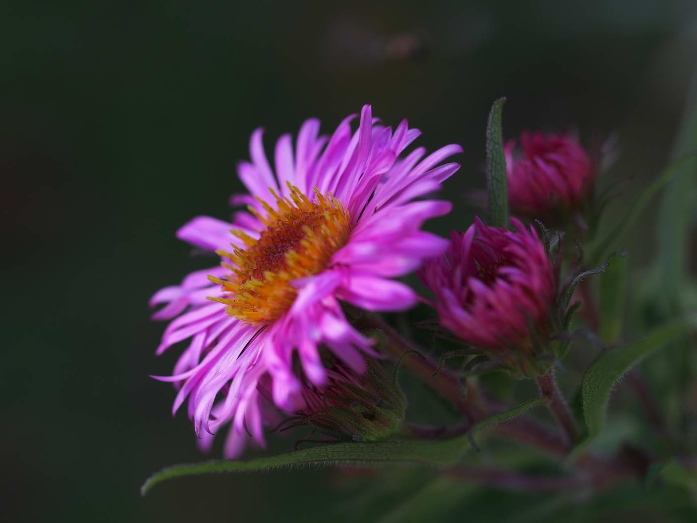 Gartenlady, das erste Herbstbild mit den Baumstämmen (die für Strenge sorgen) und den unscharfen Tupfern (die wild und anarchisch daherkommen) gefällt mir sehr gut!Sarastro, eine schöne Farbkombination und toll leuchtend!Maddaisy, was wäre der Herbst ohne Astern? Davon kann man nie genug haben, ich mag sie total gern.