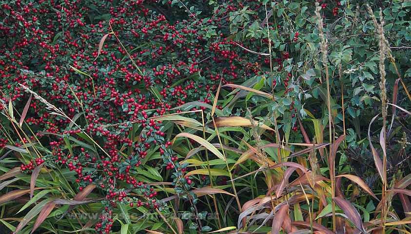 Cotoneaster, verdammt wegen vermeintlicher Feuerbrandverbreitung oder verkannt als 08/15 Bodendecker. ::)Es gibt so viele schöne strauchig wachsende Arten, immergrün oder laubabwerfend mit wunderschöner Herbstfärbung und alle mit herrlichem Fruchtbehang. :D
