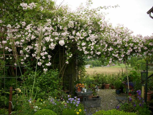 Vielen Dank, Ihr habt mir alle schon total geholfen! Ich habe mich sehr gefreut, dass sich gleich Leute gemeldet haben, die sogar Erfahrung mit diesen Sorten haben. Das Bild ist wunderschön, ich kann nur hoffen, dass LJS sich bei mir auch so gut entwickelt. Dachte, die Rosen wachsen wesentlich zurückhaltender als der Knöterich, den ich diese Woche nicht ohne Mühe entfernt habe. Da hattest du dich kaum zum Kaffee hingesetzt, schon hatte er dich umschlungen. Es ist schon relativ viel Platz auf der Terrasse, sie geht so um das Haus herum. Also mache ich mir im Moment noch keine Gedanken über exzessives Wachstum, eher das Gegenteil. Aber ihr habt schon recht, das kann schnell umschlagen. Weiche Triebe wären auf jeden Fall besser als harte, stachelige, also werde ich Ännchen an einer Stelle unterbringen, wo sie nicht stört. Herzliche Grüße und nochmals vielen Dank, auch im Voraus für eventuell noch kommende Beiträge. Werde alles aufmerksam verfolgen.Gretl im Busch