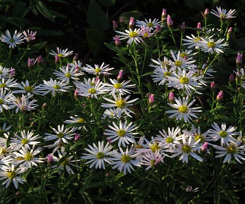 Vor mehr als 10 Jahren kaufte ich bei Olaf Grabner Aster microphyllus. Hier wurde sie schon mal erwähnt. Keine Ahnung, obs der richtige Name ist.Zwar ist sie nicht spektakulär, dafür aber absolut anspruchslos, trockenheitstolerant. 40 cm hoch und aufgeblüht fast weiß, knospig zartviolett. Sie treibt Ausläufer, allerdings nicht so weitläufig wie A. ageratoides.