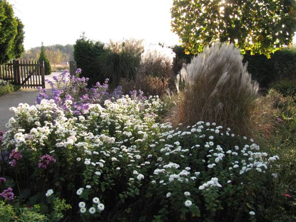 . Eine alte Zufallschrysantheme steht irgendwie stiefmütterlich bedrängt im Beet und eine blasslila Chrysantheme, sehr hoch, habe ich aus einem Nordgarten bekommen. Die geht aber nicht ohn Stütze. Und da ich selbige wieder vergessen hatte anzubringen, sieht die Staude grad etwas bezwungen aus.Eine weiße Chrysantheme hatte ich gepflanzt bei der Neuanlage vor vier Jahren oderdrei? - und die ist nach dem Winter wech gewesen.Hatten die eigentlich im Herbst bei der Staudenbörse eine gute Auswahl an Chrysanthemen?