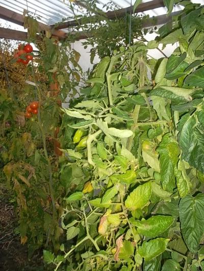 Ich habe Madame am Wochenende die immer noch reich tragenden Tomatenpflanzen im Gewächshaus gezeigt. Ihr Kommentar: "Willst Du mich unglücklich machen?".