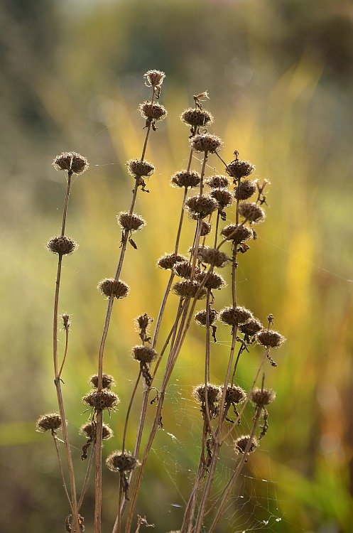 Ich habe es gerade am Foto ergänzt. Das sind Phlomis maximowiczii, die in der Tat sehr zart wirken. Auf dem Übersichtsfoto sind im Vordergrund rechts (etwas unscharf) noch "fette", große Phlomis russeliana-Samenstände zu sehen.
