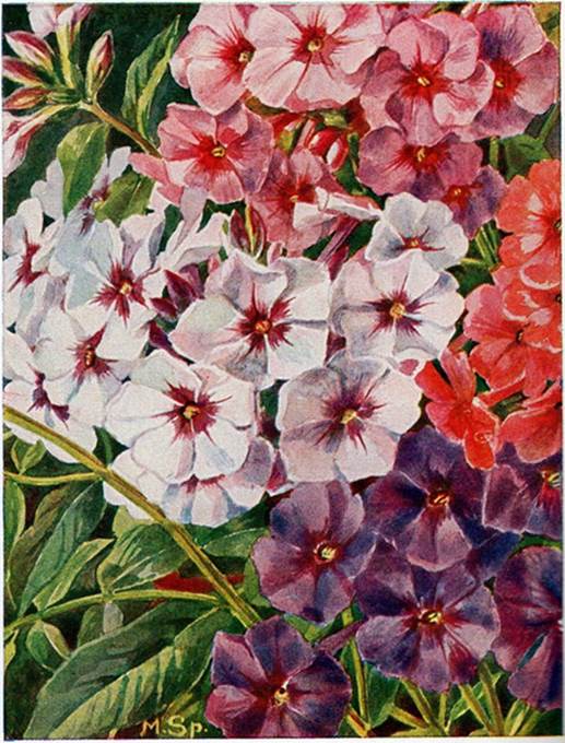 Aurora, das ist wohl die richtige Entscheidung? Trostpflaster für einen verlorenen Phlox: eine Abbildung aus dem Jahr 1927, die Sorten sind nicht einzeln genannt.