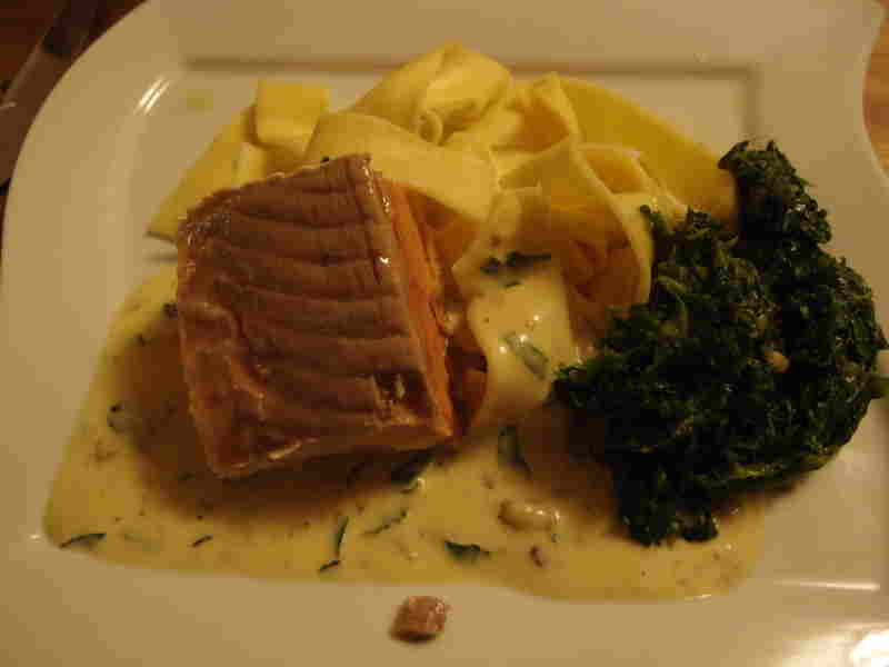 gestern dann besuch, leider ohne fotos.zur vorspeie gabs hummus, auberginenmus und zucchini-schafskäsepaste. dazu knusprig warmes fladenbrot.dann ententagine mit gemüse, rosinen-mandelcouscousund zum nachtisch orangen-granatapfelsalat mit gehackten pistazien und (nicht arabisch, aber doch passend) dunkler mousse au chocolatheute dann wieder besuch. lachs auf der haut gebraten, breite nudeln, sahnesoße und blattspinat. zum nachtisch rest mousse au chocolat, dazu vanillesoße