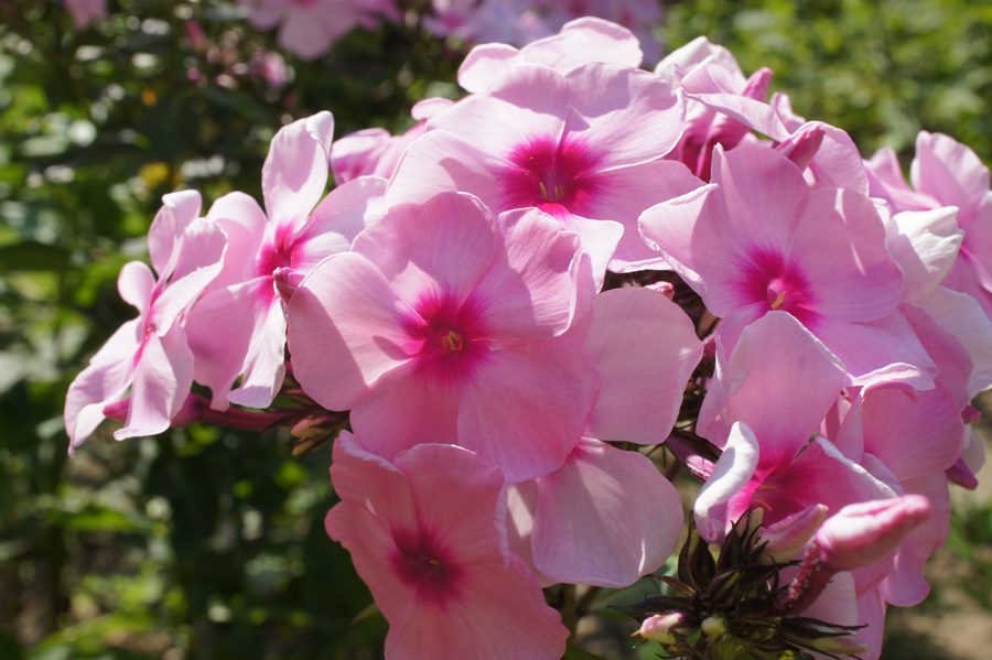 Man könnte es auch positiver mit zuverlässig und vertraut beschreiben, und diese Assoziationen genügten mir, um ganz bewusst diese Sorte wieder im Garten zu pflanzen, welcher Klon auch immer es hier sein mag... 'Landhochzeit' ist für mich wie auch 'Kirmesländer', 'Dorffreude' und 'Europa' der Inbegriff des klassischen Bauerngartenphloxes und des Phloxes, wie ich ihn aus der Kindheit kenne.Ich glaube, würde ich eine größere Phloxpflanzung verwirklichen, wären Sorten in eben diesem Farbspektrum das webende Bindeglied zwischen ein- und andersfarbigen Sorten, die entsprechend sparsamer verwendet würden.So ähnlich mutete zu besten Zeiten auch der großelterliche Garten an: Phloxreinbestände, dabei weiße, violette und dunkle Sorten eher mit Solitärcharakter, umgeben von reichlich in der Wuchshöhe homogenen rosafarbenen. Ich mochte das sehr, vor allem aus Dreikäsehochperspektive.Klingt allgegenwärtig und gewöhnlich? Das sollten wir ändern.
